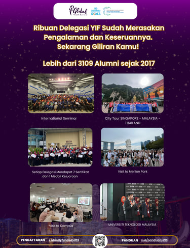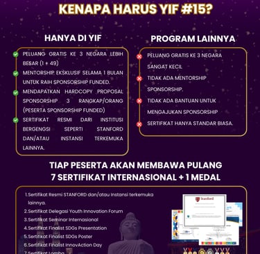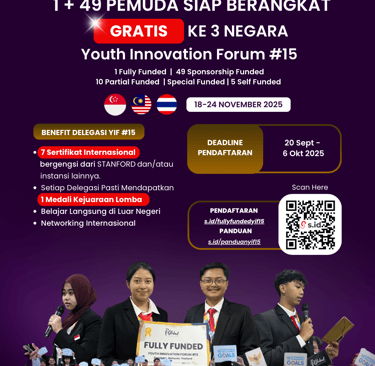 Youth Innovation Forum hadir sebagai platform untuk menginspirasi dan memberdayakan anak muda dalam memberikan kontribusi nyata terhadap pembangunan berkelanjutan. Salah satu kegiatan unggulan dalam forum ini adalah SDG’s Poster Competition, yang bertujuan untuk mendorong kreativitas, inovasi, dan kepedulian generasi muda terhadap SDGs. Melalui kompetisi ini, para peserta diharapkan mampu menyampaikan gagasan mereka mengenai isu-isu global yang relevan dengan SDGs melalui media visual yang menarik dan penuh makna. Poster yang dihasilkan tidak hanya menjadi karya seni, tetapi juga alat komunikasi yang kuat untuk menyuarakan pesan penting tentang keberlanjutan.