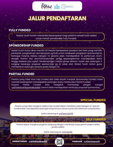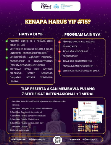 Sustainable Development Goals (SDGs) adalah agenda global yang dicanangkan oleh Perserikatan Bangsa-Bangsa (PBB) untuk mengatasi berbagai tantangan sosial, ekonomi, dan lingkungan yang dihadapi dunia hingga tahun 2030. Dengan 17 tujuan yang mencakup pengentasan kemiskinan, pendidikan berkualitas, kesetaraan gender, energi bersih, serta aksi terhadap perubahan iklim, pencapaian SDGs memerlukan kontribusi dari semua pihak, termasuk generasi muda. Pemuda merupakan aset penting dalam pembangunan global. Mereka adalah generasi yang akan mewarisi tantangan dan peluang di masa depan. Di tengah perkembangan teknologi, pendidikan, dan akses informasi, pemuda memiliki potensi besar untuk menciptakan solusi inovatif dalam mendukung pencapaian SDGs. Namun, potensi ini sering kali tidak terarah dengan baik karena kurangnya platform untuk menyalurkan ide dan inovasi.